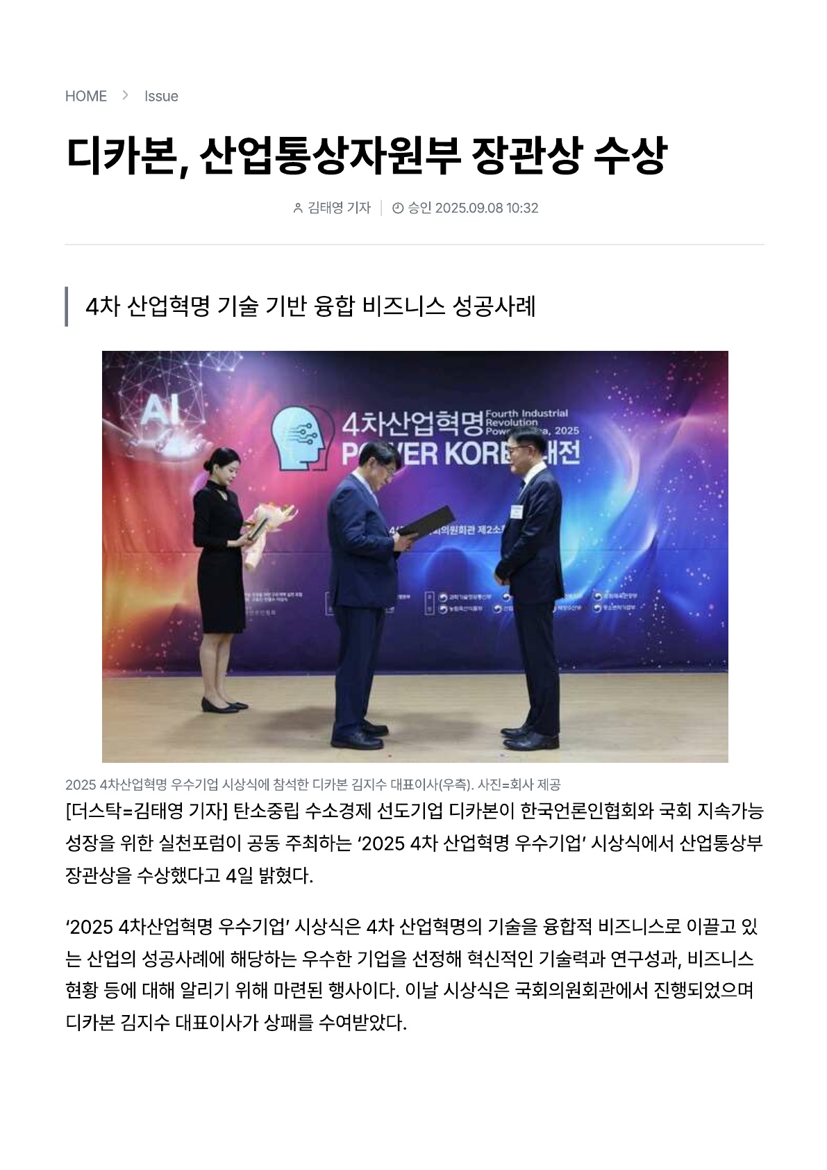 🌿 디카본, K-Green Tech에 선정되었습니다!